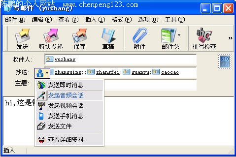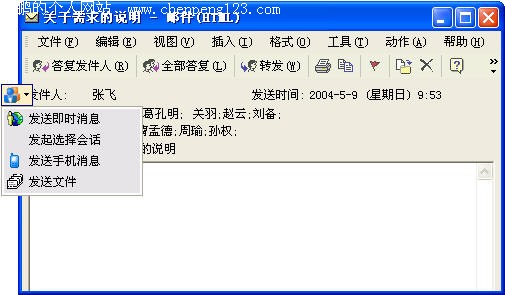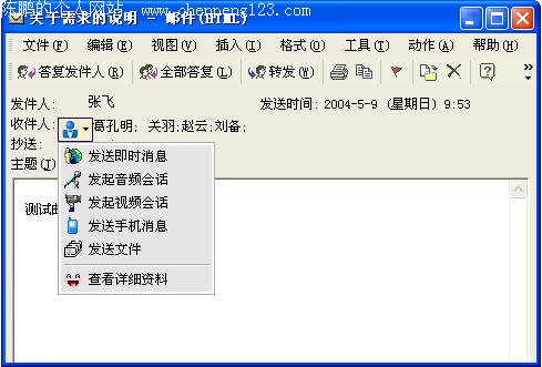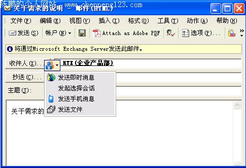 在腾讯通RTX 3.31版本中增加了一个邮件助手的新功能,支持对MS Outlook、Outlook Express、Foxmail、IBM Notes等传统邮件工具的集成。