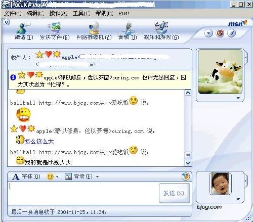 6 不需要管是否完整,只要对方也安装了shell或者plus这样的msn插件,就会看到变大的表情.图六