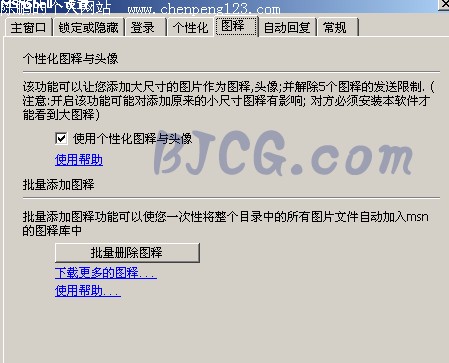 4 然后在msn的我的自定义图释里面,添加一个事先做好的大表情,图四