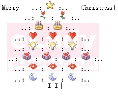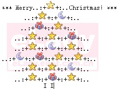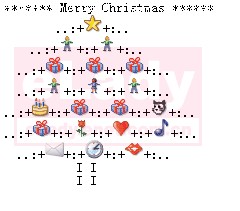 一起过个欢乐的圣诞节!MSN Messenger表情也来玩点花样,在下边的选取你喜欢的图案区域,粘贴进MSN Messenger,发给好友,你就会在对话框中看到漂亮的圣诞祝福图形!快来试试 圣诞树
