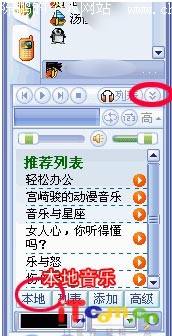 现在很多IM即时通讯软件都推出了在线音乐服务。但作为一个在线音乐的服务功能,更多的要依赖于网速的快慢。而由于网速的限制,使得部分网友在欣赏边下载边播放的音乐时,会对陆续停顿的音乐感到一丝反感。 其实除了在线视听外,利用MYIM软件也可以进行本地硬盘中音乐的播放,MYIM除了提供在线音乐服务以外,同时也是一款不错的MP3播放器,而且实现的方法也非常简单,在MYIM的主界面展开在线音乐的板块,点击本地列表(如图1)。