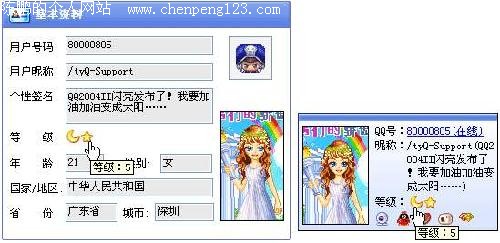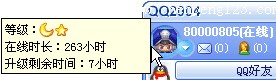 腾讯QQ 2004II beta1全新推出在线时长功能,通过累积在线时长,您就可以获取相应的QQ等级。累积在线时长等级将有机会参加我们即将推出的奖励活动和享受相关的优惠服务,而不影响正常的QQ使用。 在线时长从去年下半年开始统计,使用腾讯QQ(包括在线,隐身,离开状态),使用腾讯TM,或是在Wince平台下用手机登录腾讯QQ,均计入在线时长。在线状态下不即时更新在线时长,每次下线后,更新本次的在线时长和等级。在线时长等级由太阳,月亮,星星三个图标标识。 您可以在好友资料和好友资料浮出Tips显示中查看好友的在线时长等级。