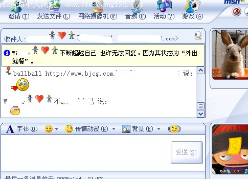 今日登陆MSN7时,突然收到了好友发来的动态表情,很是吃惊。经过测试证实,的确是不需要任何插件,MSN7 已经确定支持gif动态表情。图片大小限制为50象素,但是比起以前只有19象素的表情来说,已经是大大的改进了。图一