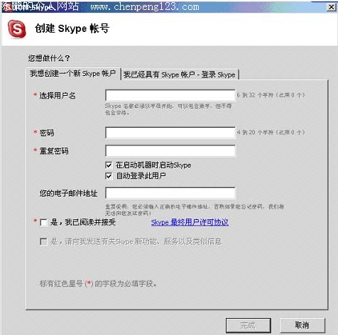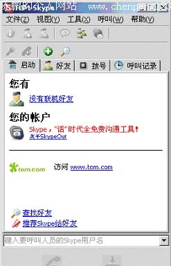 现今的聊天软件不可谓不多,常用的像QQ、ICQ、MSN,、UC等等。聊天功能也越来越丰富和强大,像QQ最初简单的文字聊天,到现在丰富的字体表情图片,甚至是视音频等。但是我却一直没有找到一个满意的语音聊天工具。在经历了数次断断续续、严重延时、声音变调的完整示范之后,无奈的我只好选择多打几行字或者付出昂贵的电话费。 前几天,朋友推荐我TOM-SKYPE,说它的免费语音聊天就跟打电话没什么两样。抱着试一试的态度,我到http://skype.tom.com上“立即下载”了一个安装程序。 安装速度快得让人并怀疑就装这么点东西能做些什么呀,不过还没来得及再想什么,注册界面就出现了: