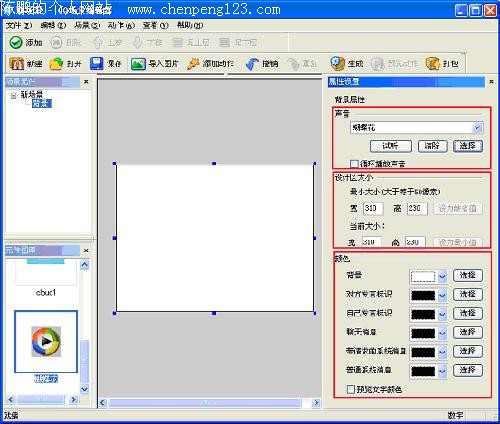 第一、背景属性设置 在背景属性设置中包括:声音、尺寸大小和在该场景的IM窗口中各部分文字颜色的设置等,此外针对文字颜色的设置,还提供了“预览”功能,可以随时查看修改了颜色之后的效果!