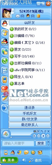 本月初,在腾讯公司发布了要推出QQ2005 Beta1版的消息后,我们学院对其新功能也作了报道(详见《QQ2005Beta1版功能大揭秘》)。时过半月,万众瞩目的QQ2005 Beta1版终于发布了,经过小编的一翻试用,为大家泡制了这篇QQ2005 Beta1版的评测文章,让大家先一睹为快! 视觉新感受——全新QQ界面 历来腾讯在其界面的设计上都有过人之处,不管是QQ软件还是网站,在QQ2005 Beta1版之前的其它版本中,其采用的都是浅色调,而在这次的QQ2005 Beta1版中,在QQ界面中首次采用了深蓝色作为了其主色调(如图1)。