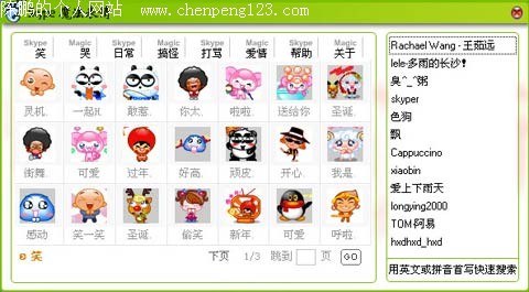 Tom-Skype自从推出以来,就以超清晰的语音通话功能受到广大网友欢迎,使用这个软件的朋友也是越来越多了。哈哈,最近终于发现一个好东东可以让Tom-Skype更好玩,现在就推荐给大家。 这个软件类似于QQ的魔法表情,是属于TOM-Skype的魔法表情,现在可是免费使用哦。 想在QQ上玩魔法却又不想买Q币的朋友现在可以用Tom-Skype魔法表情来过瘾了。 总数多达200多种免费魔法,让屏幕前的沟通也有声有色。 看看下面的图片,怎么样?有意思吧!
