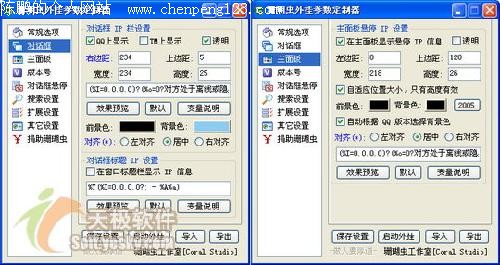 笔者上网多年,一直以来使用的聊天软件都是国产软件的骄傲——腾讯QQ,从QQ的 99 版开始使用,用到了如今的 2005 beta1 版。在这个过程中,常常下载安装试用一些QQ的辅助软件,其中有一些让笔者能更好地更方便地使用QQ。 现在我把这些好用的软件陆续介绍给大家,希望能对大家用好QQ有所帮助。 外挂显IP 类 此类软件的最大特点就是通过外挂或是修改腾讯官方QQ主程序的方式加入显示对方 IP 的模块,它们常常会提供一个修改了的集成安装包,可以不使用腾讯官方QQ的安装包,而直接安装它们所提供的集成安装包就可以使用QQ的全部功能了。 此类软件的代表是珊瑚虫QQ外挂及其集成安装版、飘云版QQ、传美版QQ以及已经消失在“江湖”中的木子版QQ和邹丹版QQ。下面来看看最流行的珊瑚虫QQ外挂到底能为做什么事情。(下载QQ2005Beta1珊瑚虫版) 在安装好后,启动安装文件夹中的 CQQCfg.exe 文件即可打开“珊瑚虫外观参数定制器”程序,该定制器分为九个不同的页面,图一所示的是它的“对话框”与“主面板”两个其主要功能的页面。
