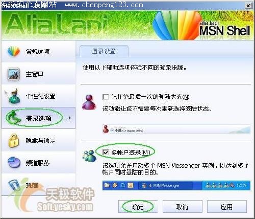 小提示:多帐号登陆同样可以保存密码,MSN Shell提供的高强度算法可以保证密码安全性。