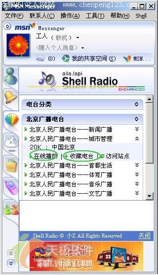 小提示:MSN Shell在关闭主窗口继续在后台播放,你就可以关掉MSN静下心来听电台节目了。