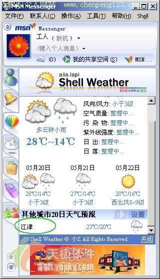 天气预报在人们的生活中成了不可缺少的一部分,它对很多人来说也是十分实用的。能借助MSN Shell就可以实现这一功能。