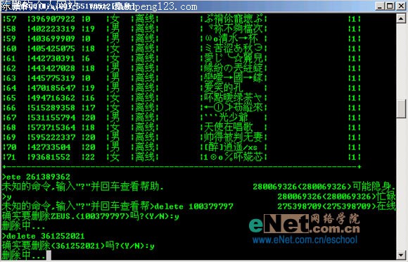一般情况下大家删除QQ好友,都会采用拖拽黑名单的方式将其删除,但是随着网友逐步增多的影响,这一方法操作就会变的很烦琐。其实殊不知依靠迷你QQ工具,即可帮你将其QQ内的N多网友,大批量自动删除。 迷你QQ是一款短小精悍自主开发的通讯工具(下载地址:http://www.yabcd.com/xinxi/bencandy.php?fid=54&id=420),它与当今最为流行的腾讯QQ,可谓是“同父异母”的兄弟,用户可利用其工具代替QQ软件和好友进行聊天,并且在命令台模式下,能够体验不同的通讯模式。打开“迷你QQ”客户端,按照界面内所给提示信息,将想要删除好友的QQ号码及密码输入,并且敲击“回车键”按钮将其登录。然后在下面新起一命令行处,输入“listall”命令后,从界面所显示的号码里,把想要删除的QQ号复制到剪贴板上。 接下来打开UltraEdit32编辑器,将复制到剪贴板上的内容粘贴到其编辑区内,如果想要以进制的形式编辑该内容,可直接单击上方“切换HEX模式”按钮,这时编辑区里的内容就会以进制的形式排列。然后按住“Ctrl+a”组合键框选里面所有内容,单击“右键”按钮,选择“替换”选项,从中查找“20 7C”字符,并将其替换成“0D 0A 79”字符后。再次单击上方“切换HEX模式”按钮,将刚才切换的“HEX”模式,还原成“正常”模式,此时还原后的每个号码会被y分隔(如图1)。这里把它们全部选中后,再复制粘贴到一个空白记事本里,然后在单击上方“编辑”菜单,选择“替换”选项,将每个号码前的特殊字符,替换成“delete”删除字符,最后再将其修改后的代码,全部复制粘贴到刚才打开的迷你QQ窗口内,回车执行批量自动删除QQ好友即可(如图2)。