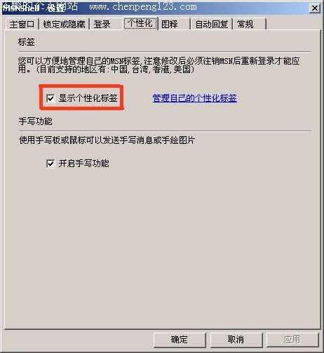 前不久流行一个手写软件,装上之后可以为MSN提供手写功能。如果有手写笔的话,你就能和MSN好友手聊了。但大家都是用鼠标把文字或表情画出来的,非常好玩。不过当时要实现手写功能很麻烦,现在最新版的Shell集成了这个功能,但默认是不打开这个功能的。所以你要在MSN的工具栏上,打开Shell的设置菜单,选择“设置”,打开设置界面,选择“个性化”标签页,把最下面的“开启手写功能”勾起来,点“确定”退出。