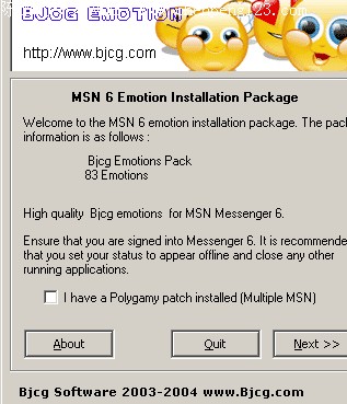 1 首先在http://www.bjcg.com下载MSN表情包-桃源包包系列。 2 登陆你的MSN。 3 双击表情包安装程序,图一