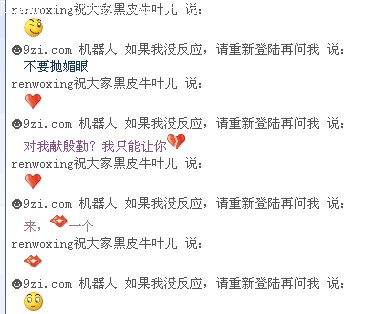 机器人小布所查询信息还是比较准确及时的,但是稳定性还不是很好。正如她的妮称中提到的那样:“9zi.com 机器人 如果我没反应,请重新登陆再问我”,你可能会得不到响应。笔者曾问过:“你有兄弟吗?”小布的回答很搞笑:“其实做机器人很惨的,朋友多了,MSN登陆好友列表太慢,就超时,我就经常重启,上上下下的,人家一不高兴就给丫删除了.朋友都没得做.惨啊”。现在小布的妮称又变为:“9zi.com 机器人为你服务 可能我上上下下的比较烦,但不要删我啊,我好友达5000,登MSN比较困难 ”。随着小布的好友越来越多,也许她的创造者会考虑给她创造一些弟弟妹妹,来改善小布的稳定性。同时笔者也希望,其它IM版本的小布早日面世。