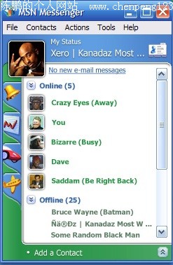 平时喜欢用MSN Messenger的朋友都知道MSN每一次大版本号的升级都会带来很多激动人心的新特性,做为最新版本的MSN Messenger,7.0一直都披着一层神秘的面纱,直到今天才放出了清晰的截图。从截图上看,7的界面风格和微软的下一代Windows操作系统---Longhorn很相似,并支持在MSN主程序中显示联系人的头像,看来新版本在个性化上将会有不少改变,喜欢用MSN的朋友就先望图止渴吧~