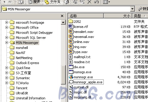 1.在http://www.bjcg.com下载MSN 6.2 0137 苹果皮肤 2.用winrar软件解压开下载的6.20137apple.rar文件,图一