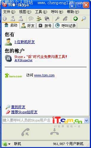 大家期待以久的Tom通讯软件:Tom-Skype今天(10月25日)终于发布了,Tom-Skype是TOM在线与SKYPE公司共同合作推出的一款全免费的互联网即时语音沟通工具,通过它我们可以与世界上任何一个角落的朋友进行免费网络电话,在具备高通话质量的同时,具备端对端的加密技术,保证通讯的安全可靠,同时不用进行路由、防火墙的设置,我们就可以轻松的使用这款软件。SKYPE实际上就是欧洲版的QQ,它在推出一年多的时间里,注册用户数达到一千三百万,在线用户过百万,可以说是现在世界上发展速度最快的语音通讯工具。下面笔者就带领大家一起来看一下这款工具的强大功能。 软件小档案: 软件名称:Tom-Skype 软件语言:简体中文 软件类别:免费软件/网络软件 应用平台:windows 2000/XP 推荐等级:★★★★★ 【立即点击下载“Tom-Skype”】 一、软件安装及功能介绍 首先我们登录TOM在线下载这款软件的安装文件,双击下载的安装文件,就进入了软件的安装界面(如图1),