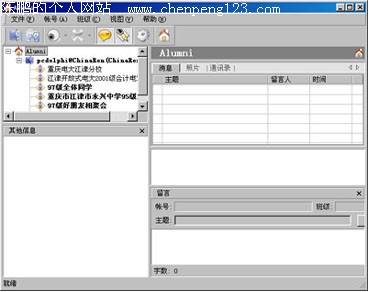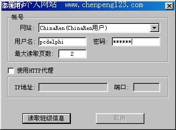 软件运行后会出现是否添加新账号的提示,选择“是”就可以看到“添加用户”窗口(图1)。首先在“网站”处选择要登录的校友录,软件默认支持“Chinaren校友录”和“5460(中国同学录)”。如笔者登录的是Chinaren校友录,选择后填入用户名和密码,在这里需要注意的是如果我们很长时间才登录校友录一次,可以把“最大读取页数”调大些,不过对像笔者这类经常访问校友录的朋友来说使用默认设置即可。