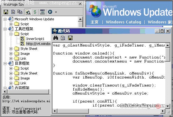 作为一个网页制作者、美工,我们都有过这样的经历:当看到一个漂亮的Flash的时候或看到一个精巧的JavaScript功能的时候,使用IE的查看源代码的功能,仔细分析相关的HTML代码,从临时目录中或网站上取得想要的SWF文件和JS文件。“他山之石,可以攻玉”,个人的精力毕竟是有限的,吸取别人优点的做法往往能够事半功倍,引用也是硬道理! 互联网中这样的宝藏真是不计其数!WebPage Spy就是一个帮助我们挖掘这些宝藏的工具,他能够将您想要从网页中得到的一切分门别类的呈现在您眼前!WebPage Spy有一个HTML代码分析器,它能够在网页在浏览器显示一个网页的时候自动从其中分析出该网页所含的HTML文件、框架、Flash文件、JavaScript代码、Style Sheet代码、图像文件、Applet文件、链接等等。所有这些都直观地显示在树形列表中,点击鼠标就可以查看图像和浏览代码,可以将自己喜欢的文件保存到自己指定的目录中。 软件资料 软件名称:WebPage Spy 软件版本:2003 软件大小:1263KB 软件性质:共享软件 支持平台:Win 9X /Win NT / Win 2000 / Win XP 下载地址:点击下载 安装软件后,WebPage Spy会自动与IE集成,显示在IE的工具栏中(如图1)。