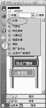 首先,确保你已经安装了最新版的realplay和windows media player。登录http//www.qqradio.com,查找你喜欢的电台,复制其网址。 登录QQ后,选择侧边栏的自定义面板,如图1点选“收藏”→“设置”。