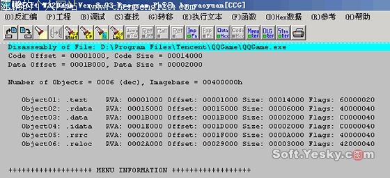 首先把问题简单的描述一下:QQ游戏的大厅设定能开启一个,尝试开启第二个的结果是一点反应也没有,现在要跟大家讲的就是如何来解除这个限制。 首选,用W32dsm(没有的朋友可以用google搜索下载地址)打开QQgame.exe(图1)