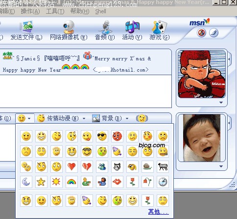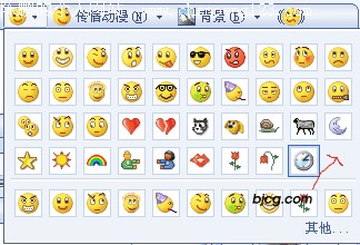 MSN默认表情窗口的40个表情实在是熟悉不过,但是里面有许多我们不常用的表情,能不能去掉换上自己喜欢的表情呢?MSN7.0已经可以轻松定制自己的表情窗口了。 1图一,点击表情窗口里面的“其他”。