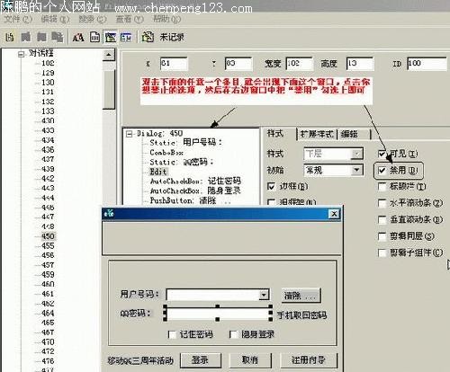 本技巧在QQ2000C Build1230这也有效,如果你使用的是QQ2000C Build0825或0630版QQ,在使用本方法时请用eXeScope打开QQ安装目录下的QQ2000b.exe文件,然后在“资源”→“对话框”→“450”中修改即可,由于方法相同不再赘述。