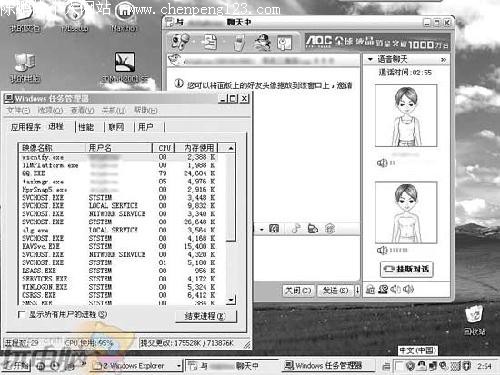 QQ2004Ⅱ beta3及以后的版本都带有“超级语音”功能,与以前的版本相比,其音质的确有了改善。但超级语音功能可不是省油的灯,相当耗费资源,仅 运行这一个程序,笔者的电脑就不堪重负,更谈不上运行其他程序。 超级语音,是福也是祸! “超级语音”到底占用了多少系统资源,笔者就给大家展示一番。笔者的电脑,配置为Celeron 633MHz处理器+PC133 SDRAM 128MB×2内存+i815EP主板,使用“超级语音”后,CPU使用率一般为75%左右,如果使用“多人超级”语音(仅三人通话的情况下),CPU占用 率立马上升至80%,根本无法进行其它操作,偶尔还出现系统假死的现象。所以笔者再也不敢轻易使用新版本的超级语音或者视频聊天功能。