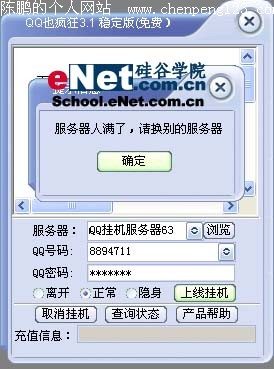 由于现在使用QQ也疯狂挂机的人非常多,一般情况下都会出现服务器挂机人数已满的对话框。这时我们只好重新选择其他服务器了。