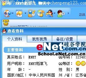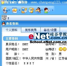 在下图中,用户昵称改成为“ENET稻草飞”,不过在聊天窗口用户和QQ号码都显示不出来,是不是很有趣?
