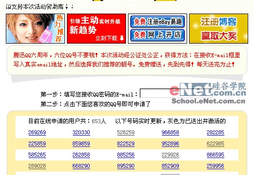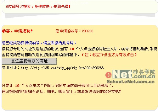 最近在网上疯狂流传着这么一段话“http://vip.rl35.com/vip_qq/vip.htm?QQ=952896&告诉你一个好消息哦,腾迅为庆贺成立六周年,现在开放六位数的QQ免费申请,你快去申请一个呀!”明眼人一看就知道这又是某个网站为了增加流量设置的骗局,可是总有些人还在不断的传来传去,受不了! 真正发现这个问题的严重性是今天早上,我可爱的紫心姐姐突然发来一个网站让我点,我马上就告诉她不点,因为这肯定不可能。天上掉馅饼的事情是不可能发生的,也许掉下来的还是“铁饼”(病毒),把你的电脑砸个稀烂这样爽歪歪了! 为了防止中毒,我打开防毒软件才敢进这个网站,越老的网民越胆小怕事,真没错。打开后发现界面如下图: