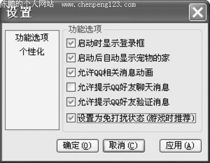 新版QQ宠物客户端以全新的界面,独特的冒泡背景,丰富的右 键菜单内容,给我们带来了一个绚丽多彩的宠物世界。除了这 些,在新版本中还可以通过一些设置,让QQ宠物带给我们更贴 心的服务。 宠物登录巧控制 如果不想打开宠物,一般有两种方法,一是打开“QQ2005设置 ”窗口,切换到“系统设置/基本设置”,在“综合设置”栏中 取消对“宠物随QQ自动启动”的勾选;二是右击系统托盘的宠 物图标,选择“退出”。 而在新版中,我们可以设置“ 登录框”,通过“登录框”来控制QQ宠物的登录。方法是: 右击系统托盘的宠物图标,选择“设置”,打开“设置”窗口( 如图1),然后在“功能选项”标签下,勾选“启动时显示登录 框”选项,然后点击“确定”按钮即可。