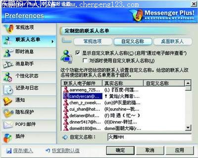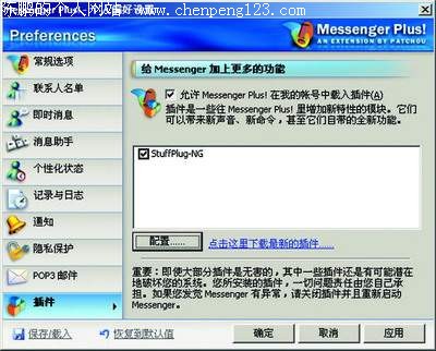 微软MSN始终以低调之势呈现在广大聊友面前,不过MSN的功能绝对是不容忽视的,尤其是有如虎添翼的两大插件(MSN Plus和MSNShell)的护身和新近推出的移动服务后更显示出微软MSN的强大实力。接下来就让笔者来教大家如何打造出更具个性的微软MSN。 倚天剑——MSN Plus MSN Plus之所以被称为MSN倚天剑,功能强大自是不必多说,而且扩展能力还非常强,除此之外,通过使用MSN Plus,我们还可以把自己的MSN打造得更具个性,更加自我。那还犹豫什么?赶紧挥舞手中的倚天剑来武装自己的MSN吧。 首先下载并安装MSN Plus,其最新版本为3.4,鉴于安装过程十分简单,在此不再赘述。安装完成后,MSN Plus会自动重新启动MSN,之后我们即可在工具栏中看见新增加的“Plus!”选项,单击该选项我们即可通过选择其中的“个人偏好设置”选项来进行自己的个性设置(如图1)。