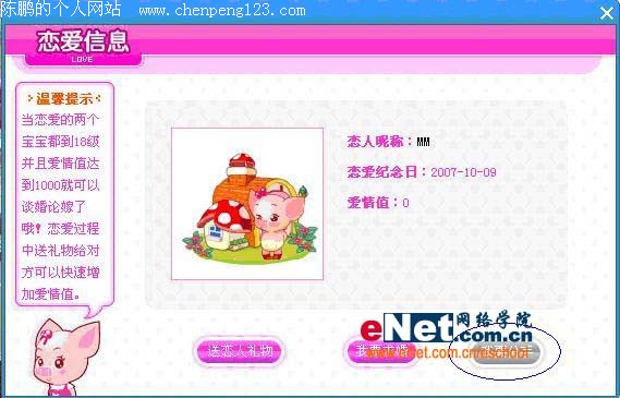 2,成长,每只猪猪增加一个成长点,爱情就增加5点