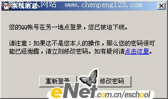 如果在登陆WebQQ的同时您没有关闭以QQ客户端登陆的程序,那么便会有系统消息提示你帐号被迫登陆,要求重新登陆,在这里我们选择关闭即可;