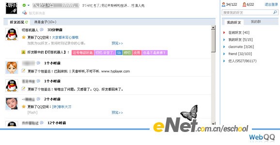 在使用WebQQ的时候如果有朋友给你发消息的话,会自动在下面的好友留言里以闪动的方式显示出来,如果多的话还会以条数显示,这里跟QQ客户端相比比较实用一些,这里的留言不但可以看到好友的头像,而且连消息的内容也可以显示出来;