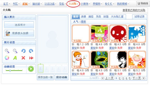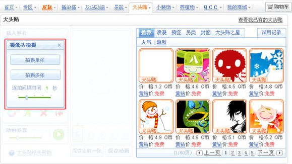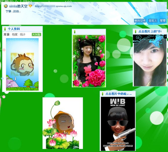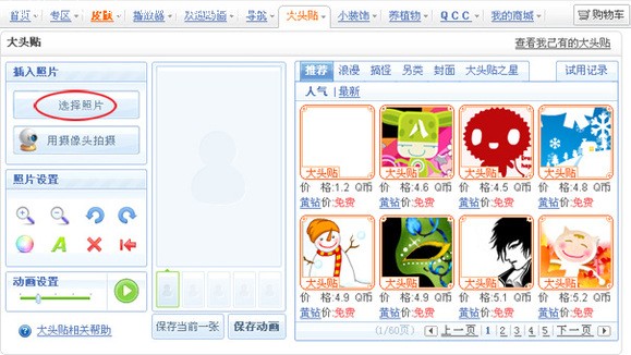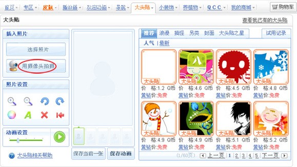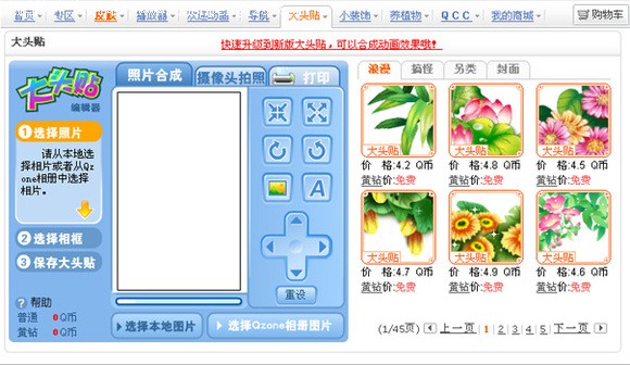 “普通相框”与“特供相框”的区别? 相对于“普通相框”来说,“特供相框”可以有特效哦,在“特供相框”上,会有一个位置可以点击,当您点击后,您的大头贴相框就会有一系列的动作,例如: 为了正常使用大头贴功能,请更新您的Flash Player版本. 当您用鼠标点击这张大头贴相框上的“GO”,就会有惊喜哦 如何进入大头贴? 第一步:进入您自己的Qzone-→点击“装扮空间”,即可进入QQ空间商城;