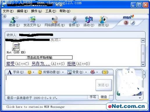 网络安全软件和服务领域的世界领导者----趋势科技(纳斯达克代码:TMIC;东京证交所代码:4704)今天清晨发布了一个MSN病毒警报—WORM_BROPIA.F剥皮虫病毒。趋势科技今天一早就收到了很多网友的求救。可能的附件名称有:underware.pif, webcam.pif, hot.pif, LAMO.exe,naked_drunk, LOL.scr等。该病毒通过msn传播时,也使用的是常见的社会工程学手法,比如有些使用的文件名字具有很强的色情味道,诱使客户接受并执行病毒传送的文件。请不幸中毒的网友尽早到趋势科技网站下载专杀工具:http://support.trendmicro.com.cn/2005/Anti-Virus/Tools/for-clean/special/WORM_BROPIA.F/TSC.zip