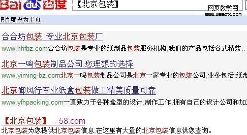 2,如果让你搜索黄页中这个词:“北京包装” 你会发现如下截图: