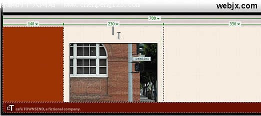 在 Dreamweaver 的“文档”窗口中打开 index.html 页面,插入一个三列的表格,在由三列组成的表格的中间一列中放置的图形之上单击一次。