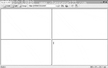 用框架构建网页 一、创建框架和框架集 第一步:在Dreamweaver MX 2004中新建一个页面,运行“View→Visual Aids→Frame Borders”命令之后可以看见编辑窗口中出现一个边框,用鼠标点击边框之后可以看见虚线框,说明新建的页面中已经附带了框架。 第二步:按下“Alt”按键,用鼠标拖拽边框,松开鼠标之后就可以把窗口一分为二,这样就把页面分为两个边框。比如拖拽左右边框可以把窗口分为左右两个部分,而拖拽上下边框可以把窗口分为上下两个部分。另外,窗口的四个角也可以拖拽,这样可以直接把窗口分为四个区域(如图1)。当窗口分割为几个框架之后,每个框架都可以作为独立的网页进行编辑,也可以直接把某个已经存在的页面赋给一个框架。