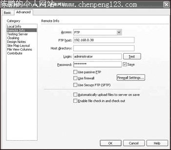 定制站点 首先我们要在Internet上找到一些用于存放主页的空间,之后我们就可以在Dreamweaver MX 2004中对这个站点进行一番定制。 第一步 运行“Site→Manage Sites”命令,并且在弹出窗口中点击“New→Site”按钮新建一个站点。 第二步 在站点设置窗口左部选取“Local Info”一项,接着在右部区域中分别输入站点的名称、本地存放文件的路径等信息。 第三步 进制在窗口左部选取“Remote Info”一项,接着在右部区域中输入申请空间的时候得到的远程FTP站点传输类型(一般为FTP)、远程服务器存放文件路径、主机地址、用户名和口令等信息。同时还要根据站点的传输模式来选择是否采用“Use passive FTP”一项,这是因为部分FTP站点采用被动工作模式,对于这部分站点就要选取该项(如图1)。