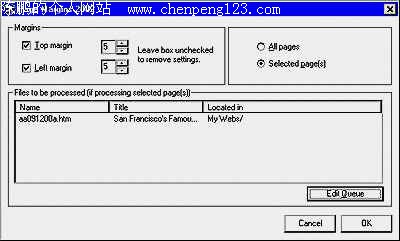 对于使用过Dreamweaver的朋友来说,在Dreamweaver中调用扩充插件是一件很平常的事情,但使用微软公司的 FrontPage这款网页编辑软件的你,是否想到过也可以在FrontPage中加入扩充插件呢?由于微软公司的 FrontPage将许多网站开发工作都加以自动化,所以在使用时,FrontPage 会自动在背后替你产生这些格式所需要的 HTML 原始码,并且FrontPage 还能够让你在不了解任何程序语言基础的状况下能够为网站加入互动效果。 如果你想加入某项 FrontPage 并未提供的动态效果呢?在这种情况下,你可能可以通过安装到其它厂商所提供专为 FrontPage 而设计的外挂插件,用来扩展 FrontPage 的功能。 在微软的主页上提供了一个 FrontPage 外挂程序清单: http://office.microsoft.com/assistance/9798/frontpageassociates.aspx 不过,清单里面的很多程序都是为旧版的 FrontPage 而设计的,不能很好地在FrontPage 2002的这个新版本上使用。在这里我向大家简单介绍几款能够在 FrontPage 2002安装使用的插件,希望对你有所帮助。 1、Page Margins 2002—设定页面边界插件 FrontPage 让初学者能够很容易地建立整个网站,但是它并无法将所有繁琐的网页原始码编辑工作完全自动化。Jimco公司(网址:http://www.jimcoaddins.com/ )设计的Page Margins 2002 是一个 FrontPage 的外挂程序,它能够帮助你通过 标识的相关属性来将整个网站的所有页面边界一次设定完成。这个程序插入的原始码不论在 Netscape 或者 Internet Explorer 浏览器里面都可使用,因此如果你不想通过繁复的表格来为页面加上留白边界,Page Margins 2002 将是你最好的选择。 在你安装Page Margins 2002后,你的 FrontPage 2002命令列上面就会多出一个「Jimco」选项。在使用这个工具之前,你必须先打开一个已经储存在某个 FrontPage 网站的页面,接下来选择「 Jimco> Page Margins 2002」以打开一个「页面边界」对话框。在这个对话框里面你可以填入顶端边界(Top Margins)以及左端边界(Left Margins)两个字段。 这个程序预设会将这两个设定值套用在目前网站里面的所有页面。不过在实际使用的时候,即使你选择了「仅套用在选择的页面(Selected Pages)」这个选项,你还是不会在「文件」区域里面看见目前网站的所有页面列表。如果你想把边界设定套用在网站中的某几个页面,你必须先打开该网站,然后选择前面提到的「仅套用在选择的页面」选项,然后按下「编辑队列(Edit Queue)」按钮。