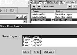 Dreamweaver从出道以来,其简便易用而又功能强大的“行为”(Behavior)一直是大家所关注的热点之一。在Dreamweaver MX(DW MX)中,对这一功能又有了扩充与改进。 在DW MX中,行为指的是为了响应某一事件(Event)而采取的一个操作(Action)。其中Event 指的是浏览器的事件,比如窗口刷新、鼠标移动等。而 Action 指的是后台响应事件的 JavaScript 代码,可以完成相应的操作,比如播放声音、翻转图片等。 用DW MX制作导航下拉菜单是网页中经常使用的特效之一。(如图1)主要应用了DW MX中的“Show-Hide Layers”行为。