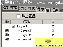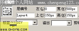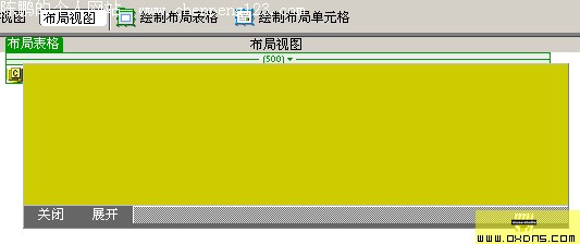 言归正传,废话少说。准备工作如下: 1. 在dw中新建一个空白文档(或者打开你要添加效果的页面)。 2. 设置好你自己的css风格。 3. 在页面上插入一个长500pix的表格(这里说明:插入表格的目的是为了控制层在不同分辨率下保持相对的位置不变,如果你的页面之前没有做相关设置,那么这一部你可能要费点功夫整理一下你的页面结构)。 4. 将光标置入表格内,点击菜单 [插入——层] 插入一个长500高20的图层,并命名为layer1。 5. 然后再将光标置入图层layer1,点击菜单 [插入——层] 再插入一个长500高130的图层layer2;并将layer2的属性中左边距和上边距都设置为0,并为它指定一个你喜欢的背景色。 6. 然后重复步骤5的方法,再插入一个图层layer3,这个图层没什么特殊的用处,在我的这个教程中,我只不过是为了放置几个按钮而已。最后我的开起来如图: