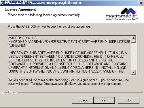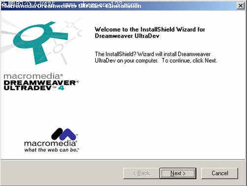 第一章:ultradev简介 第四节:Ultradev的安装 在您要使用Dreamweaver Ultradev制作后台之前,您必须准备好一张装有Dreamweaver Ultradev的正版光盘以及Macromedia提供的序列号。 都准备好了?ok,那么我们在下面的步骤中,将以step by step的形式,向您展示Dreamweaver Ultradev的安装过程和方法。 1. 将光盘放进光驱,然后进入放有Dreamweaver Ultradev4.0的目录中。这时候您可以看到如图1-1的箭头所指的标志,那个就是Dreamweaver Ultradev4.0的安装程序了。