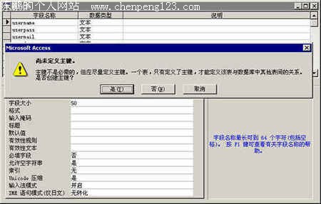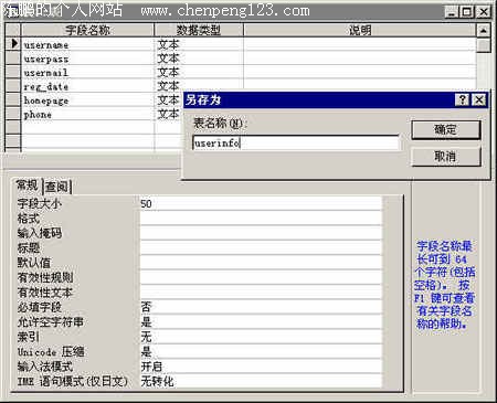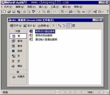 第二章:设置数据库 第一节、建立一个简单的access数据库 这一节我们将学习有关数据库创建的内容,用过Access创建数据库的朋友可以略过不看。 打开Microsoft Access,选择 文件 -〉新建数据库,然后选择一个位置保存你的数据库文件,这里我们按它默认的db1.mdb命名保存。