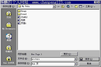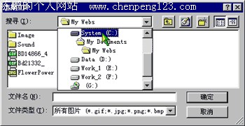 在默认情况下,FRONTPAGE认为你要插入的图片总是放在你建立的站点的目录或它的子目录下的。可以说,站点就是一个目录。我们把编辑的许多网页文件放在同一个目录下,我们称这个目录为站点的主目录。这些网页引用的图形一般也放在这个目录下。当然,我们也可以在这个目录下建立其他的子目录,再把所有的图形放在子目录里。所以搜索下拉列表只允许在主目录和主目录下的子目录进行选择。