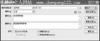 2. 文字的修改。对于大量出现的“风月同学录”字样及其链接可以利用Dreamweaver的文件夹搜索功能来批量替换(如图1);对于页脚的版权说明,可以在theme.asp代码中修改“Sub footer()”下的内容,不过为了尊重源代码作者的劳动成果,一般我们要在版权说明中提及原作者的相关内容。其他页面上的文字修改可以在网页编辑工具中进行(提示:若要更改字体的大小或颜色等属性可以在css.asp中修改CSS属性)。